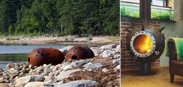 Created by esteemed Estonian sculptor Mati Karmin, the sea mines are found off the coast of Estonia and transformed into eye-catching swings, charcoal grills, aquariums and armchairs.