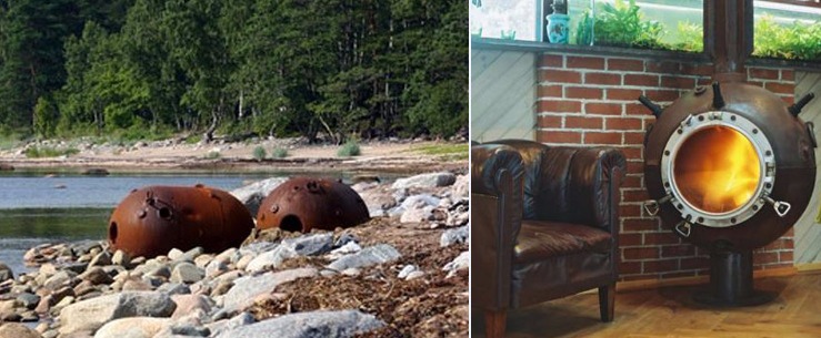 Estonian artist Mati Karmin has recycled these old and decommissioned mines into a variety of different furniture pieces ranging from fireplaces to chandeliers. You can find more information on the specific mines used here.