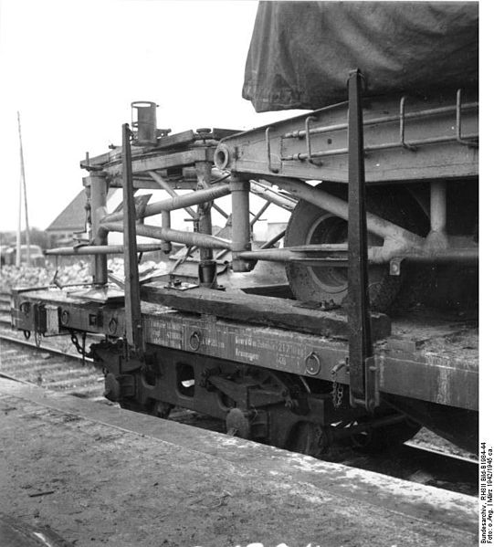 Lower part of a V2 on a specially modified railroad carriage – March 1942