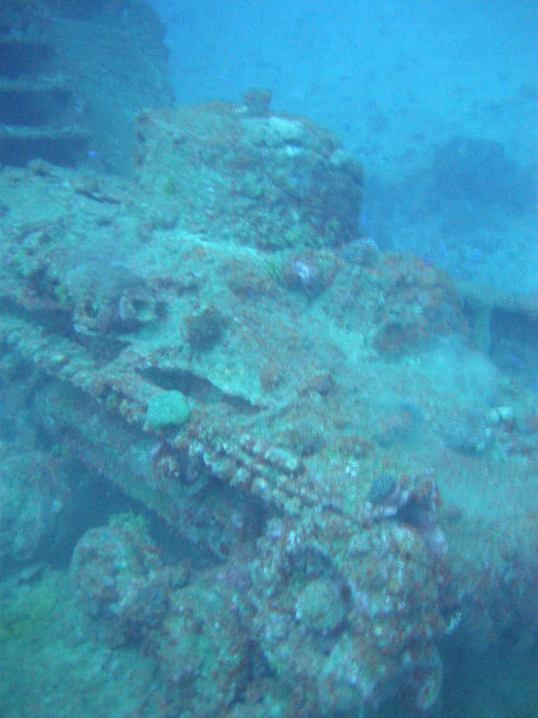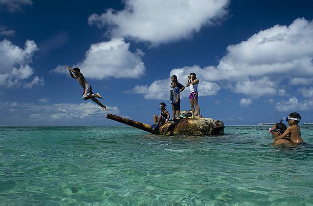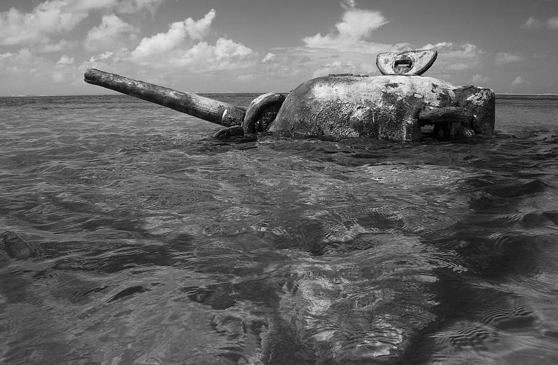 Wrecked Sherman Tank, just off the beach of Saipan [Via]