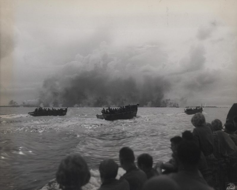 US Marines in assault craft approaching Peleliu, Palau Islands, 15 Sep 1944