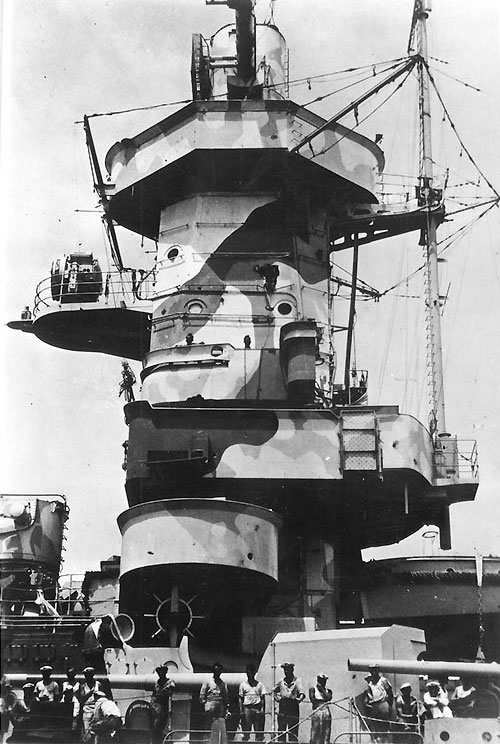 Close-up view of the port side of Admiral Graf Spee’s forward superstructure, 13-16 Dec 1939.