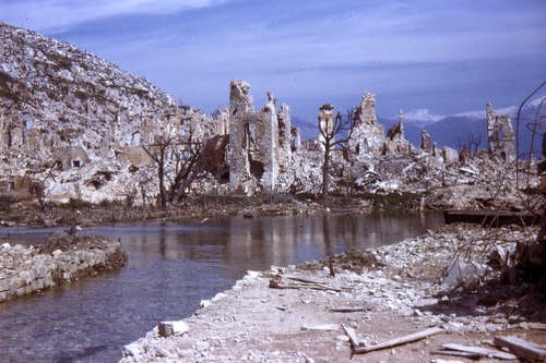 Here is a set of black and white photographs and a rare group of color slides depicting the tragic aftermath of the battle of Monte Cassino, as well as other items from the collection.