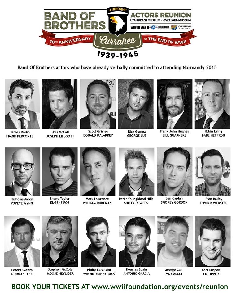 The actors will also hold autograph signings at the Hotel Villa-Lara in Bayeux, Normandy on June 4th at 5PM and at the Utah Beach Museum at 11:30 AM on June 7th. There is a ten euro per person fee for autographs at both events and Band of Brothers Actors Reunion 2015 posters are also available for 20 euros, with all profits benefitting the 501(c)(3) WWII Foundation.