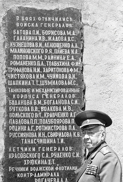 “General Borisov”. General Mikhail Borisov at the memorial plaque with his name. The plaque of the Mamayev Kurgan memorial complex bears the names of units and commanders that distinguished themselves in the Battle of Stalingrad.