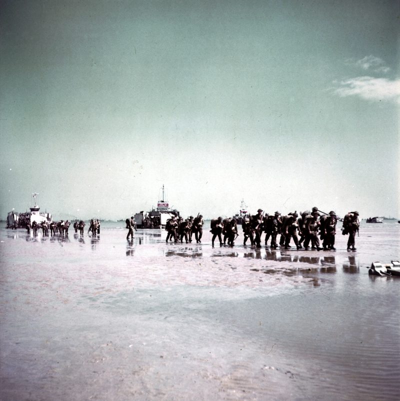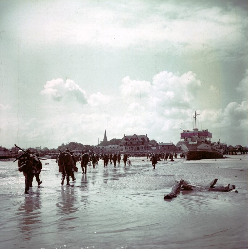 Canadian soldiers of the 3rd Canadian Infantry Division disembark on Juno Beach, at Bernières sur Mer around midday on June 6th 1944. A series of 7 pictures all shot by Ken Bell. Note the famous Villa “Denise et Roger”.