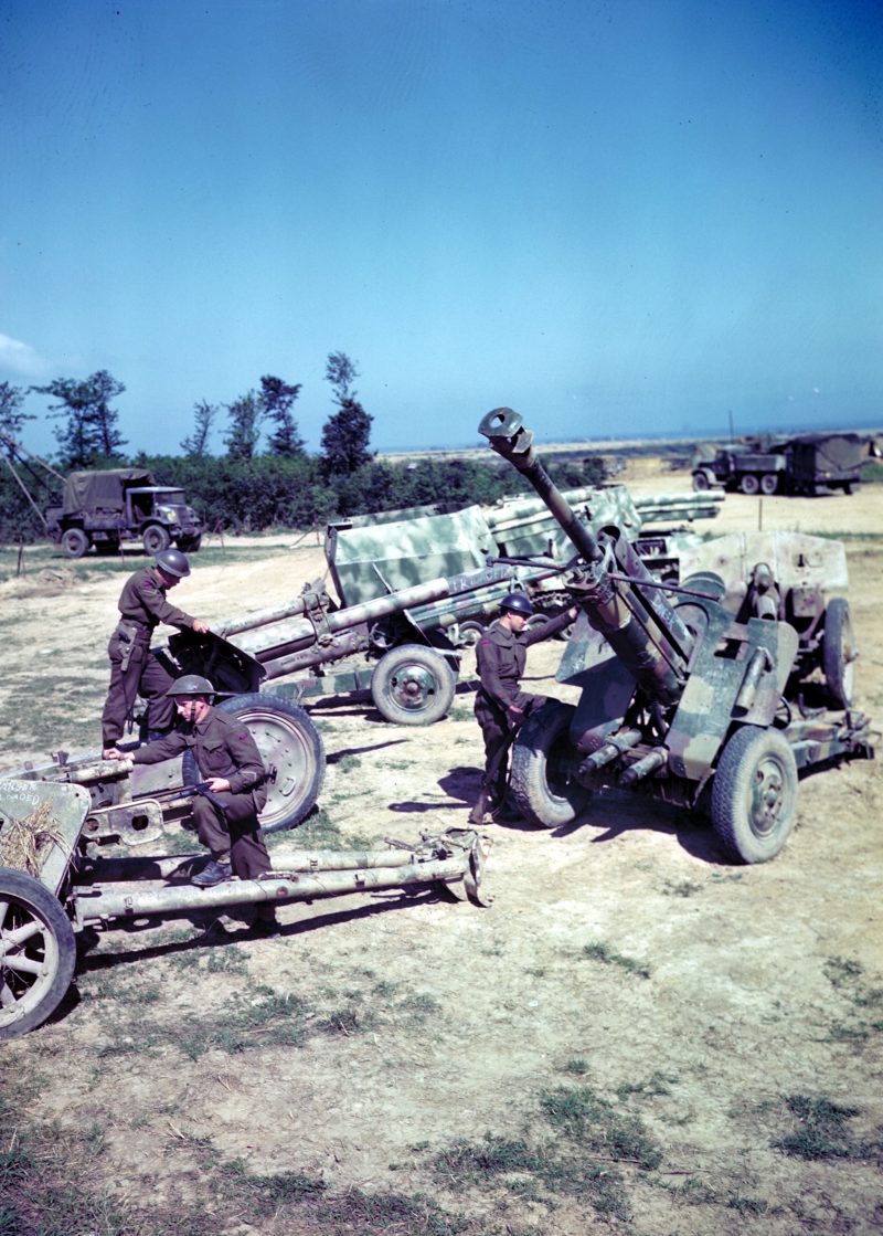 Canadian soldiers load a 6 pounder anti tank gun at the start of Operation Totalize