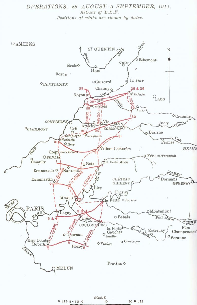 The British Expeditionary Force had to march around 300 kilometers from Mons in Belgium to south of the River Marne, located south east of Paris.