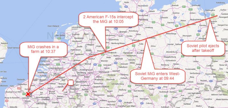 When the aircraft started descending, pilots with the help from the ground predicted that it would land somewhere near Lille, on the border of Belgium and France. Later on, the calculation showed that it would rather crash in an empty field inside Belgium, and was coded as ‘non risky’. But the calculations could not predict what actually happened, when Soviet MiG crashed in a farm killing an 18 year old boy, the Los Angeles Times reports.