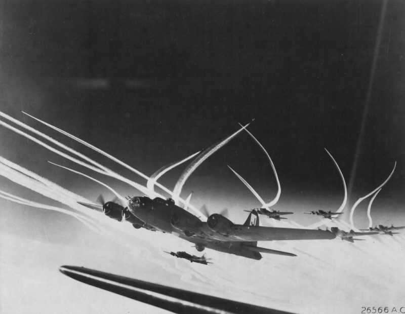 B-17 Flying Fortress 8th AF in Flak Filled Sky During Berlin Raid [Via ]