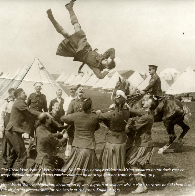 A strongman in the French army lifting a cannon overhead along with three of his comrades astride it [Via]