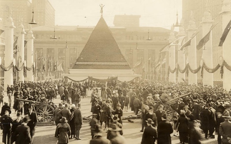 Giant Pyramid of Captured German Helmets from WWI Grand Central Terminal, New York, 1918. Photograph by New York Central Railroad. [Via]