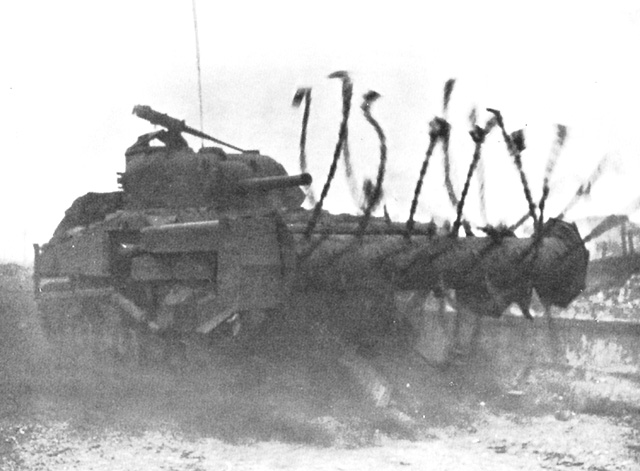 Like the infantry, the engineers had been pushed off their targets by the current, and only five of the 16 teams arrived at their assigned locations. Three teams came in where there was no infantry or armor to cover them. Working under heavy fire, the engineers set about their task of clearing gaps through the beach obstacles. A task made more difficult by the loss of equipment, and infantry passing through or taking cover behind the obstacles they were trying to blow up.
