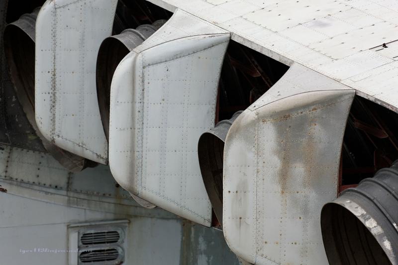 The eight Kuznetsov (model NK-87), each with a power thrust of 127.4 KN, were mounted on forward canards and powered the Lun. A flying boat hull containing a large deflecting plate was placed at the bottom to give a kick-start for takeoff.