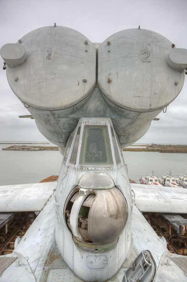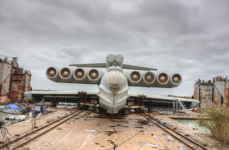 Lun, powered by eight turbojet engines, has a huge hydro-ski without a landing gear making it impossible to get on land. It instead has a dry dock that was specially designed for it.