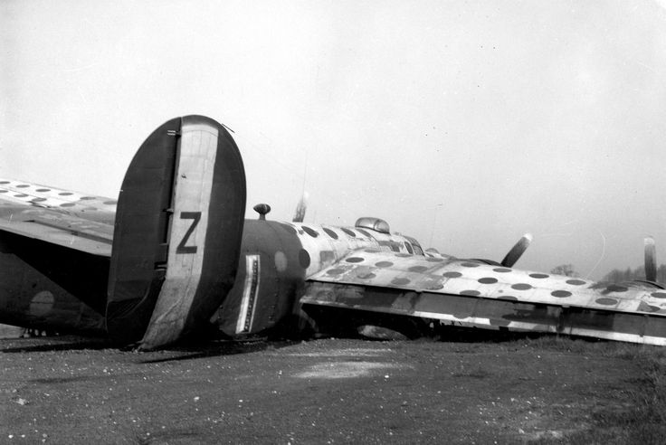 Damaged B24 at Manston after emergency landing 15 June 1944 [Via]