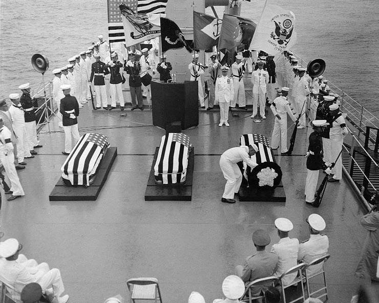The ceremony took place at Pearl Harbour, Hawaii. The remains were taken to the Capitol on Memorial Day, May 28. From there they were transferred to the Memorial Amphitheatre at Arlington.