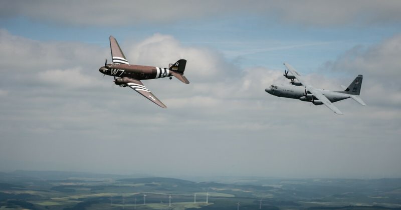 An original Normandy C-47 flew over the same beaches and villages it passed 70 years ago, with the help of the 37th Airlift Squadron’s C-130.
