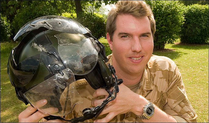 Flight Lieutenant Fortune landed the helicopter in a “hot zone” that was under heavy Taliban fire. After landing the aircraft was hit numerous times. One round ricocheted and hit Fortune’s helmet at the attaching point for the Night Vision Goggles and smashed the visor.