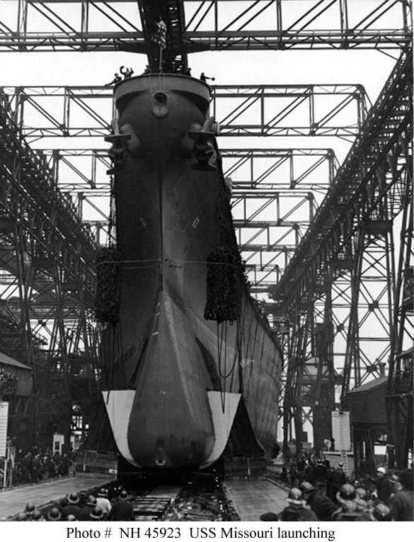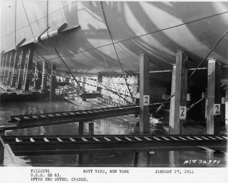Early in the day of Missouri’s (BB-63) launch at the New York Navy Yard on 29 January 1944.