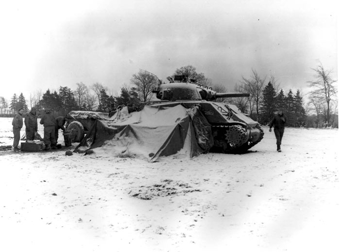 The Battle of the Bulge was fought from 16 December 1944 until – 25 January 1945 and was the last German offensive launched on the Western front and went through the densely forested Ardennes region in Belgium, France, and Luxembourg, a repeat of the operation launched May 1940 which caused the fall of France in six weeks.